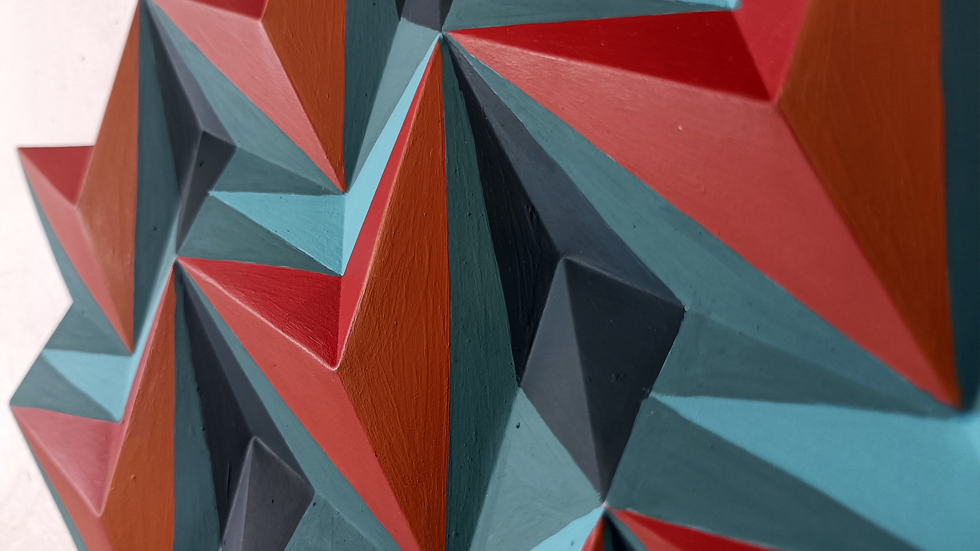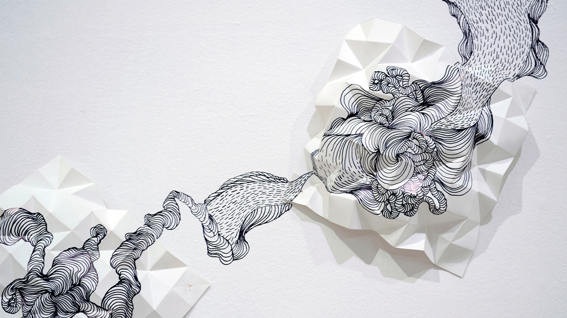 También considero que el arte es una forma de organización y de cómo afrontar la existencia ante el bombardeo de información en el que estamos imbuidos como una sociedad globalizada e intercomunicada física y virtualmente. Me gusta crear piezas que requieren concentración, paciencia y tiempo en su realización, con el fin de generar composiciones dinámicas y mutables usando pliegues, color, patrones, geometría y distintas técnicas para ofrecer un punto de vista único que articule, reflexione y dialogue sobre el presente.